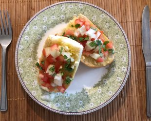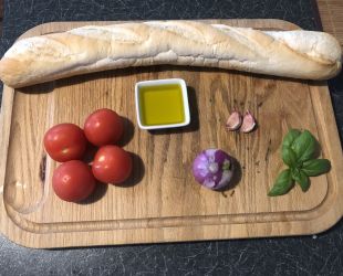 - Combine the remaining ingredients and spoon on to the garlic oil side of the bread.