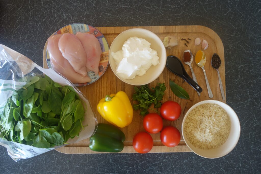 - 2. Add the yoghurt, tomatoes, spinach and coriander and heat through.