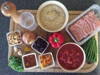 - Add all other ingredients except coriander, rice and beans, cook for about 20 minutes.