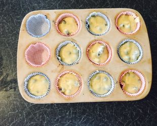 5. Spoon mix into 12 paper lined / non-stick muffin tins.