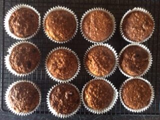 - Spoon batter into 12 paper lined / nonstick muffin tins.
