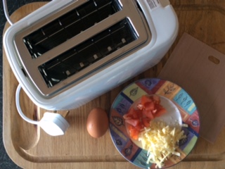 Cheese and Tomato Omelette Ingredients Cheese Tomato Egg Method Whisk egg, add chopped tomato and grated cheese Place in toaster bag Place bag in toaster and cook Serve