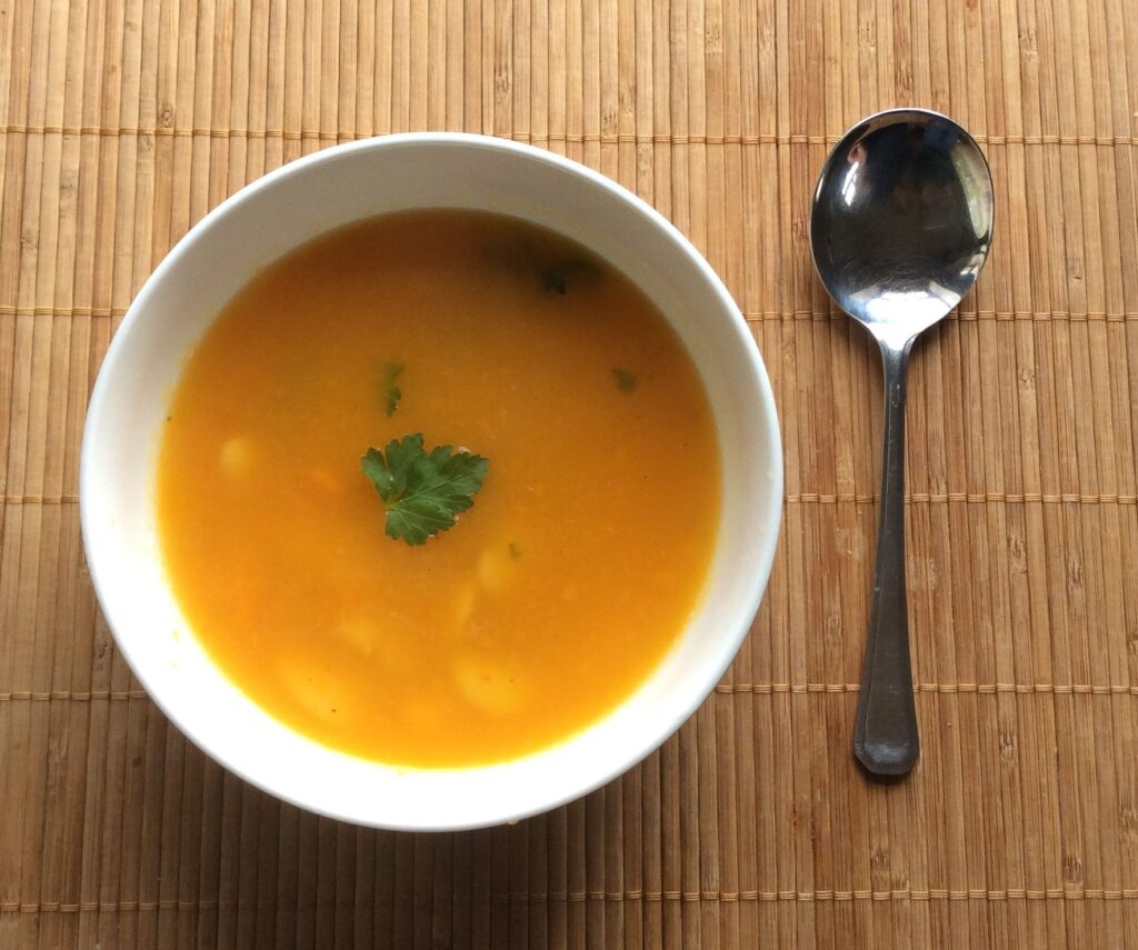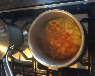 - Place carrots, onion and stock in a large saucepan, simmer for 30 minutes.